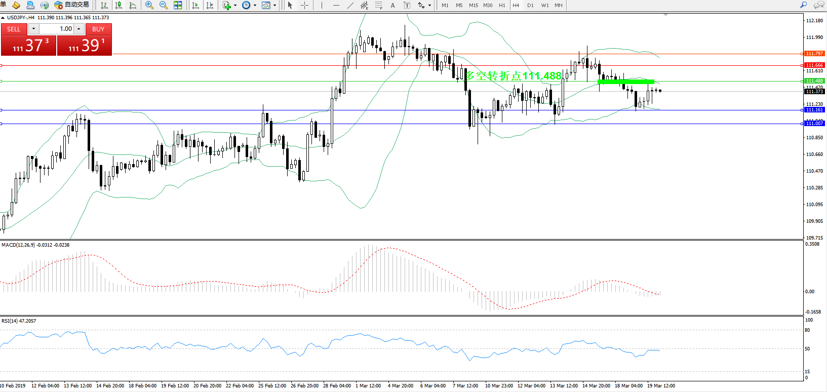 备选策略:111.488上方看涨,目标111.666、111.797