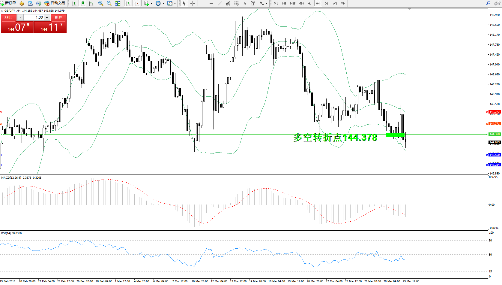 备选策略:144.378上方看涨,目标144.771145.222