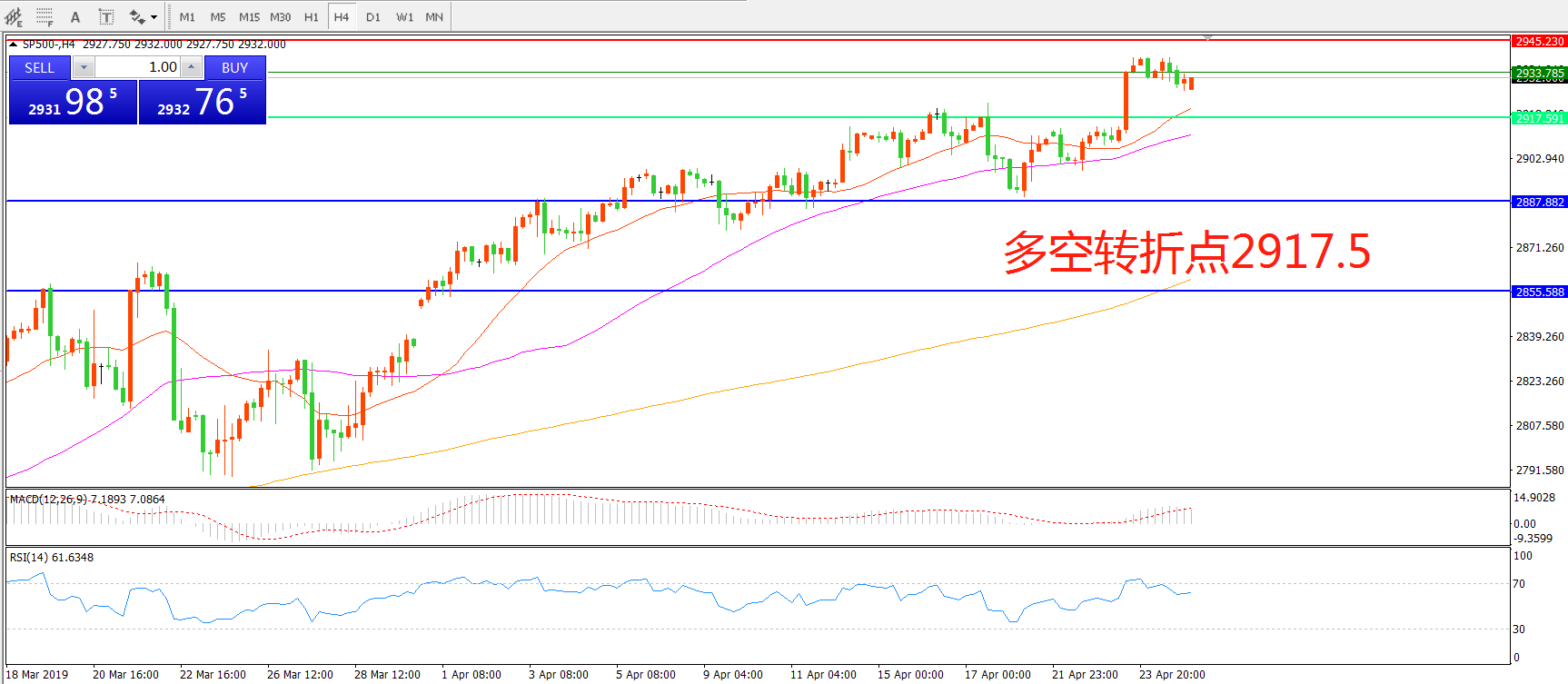 多空转折点:2917.50
