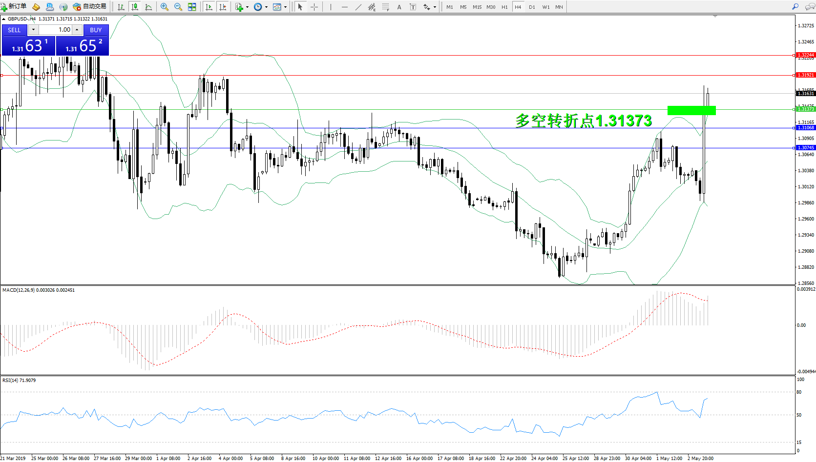 交易策略:1.31373上方看涨,目标1.319211.32244