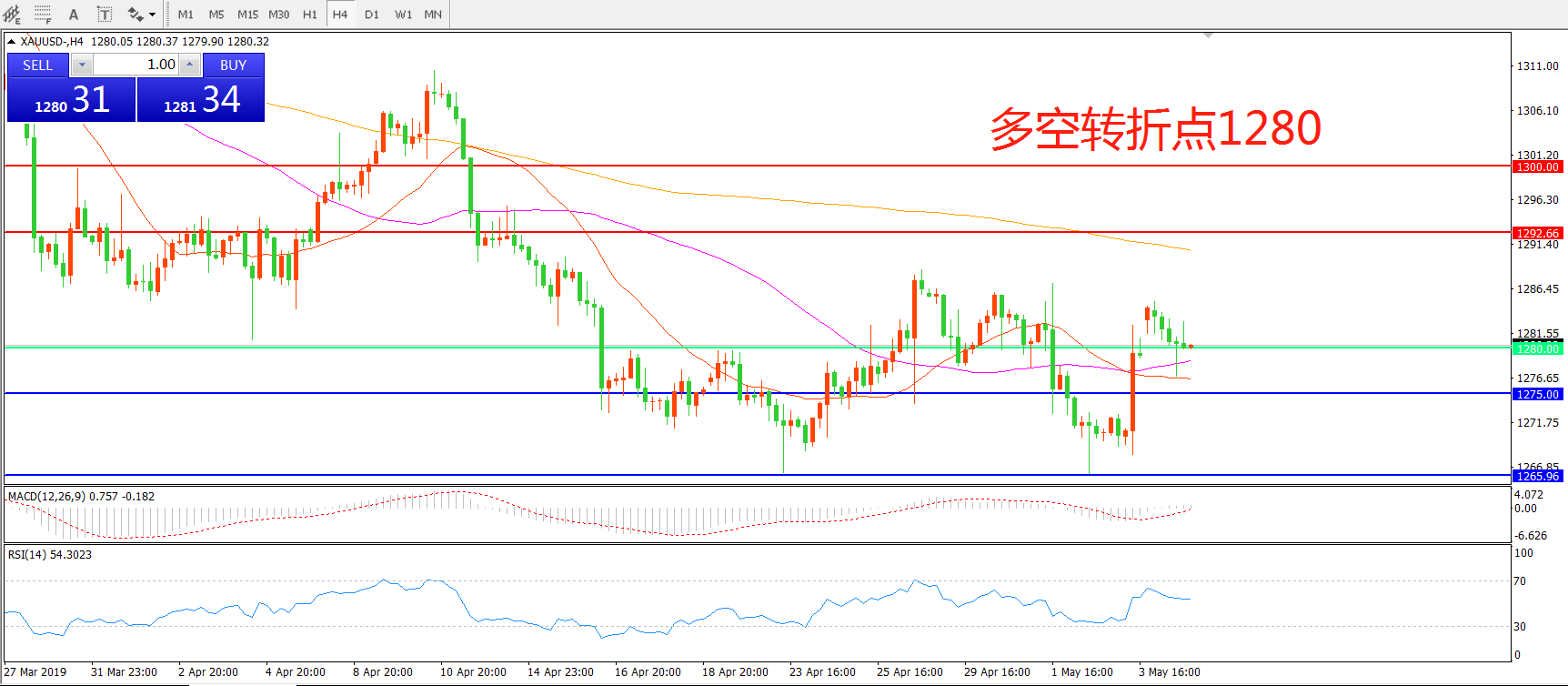多空转折点:1280.00