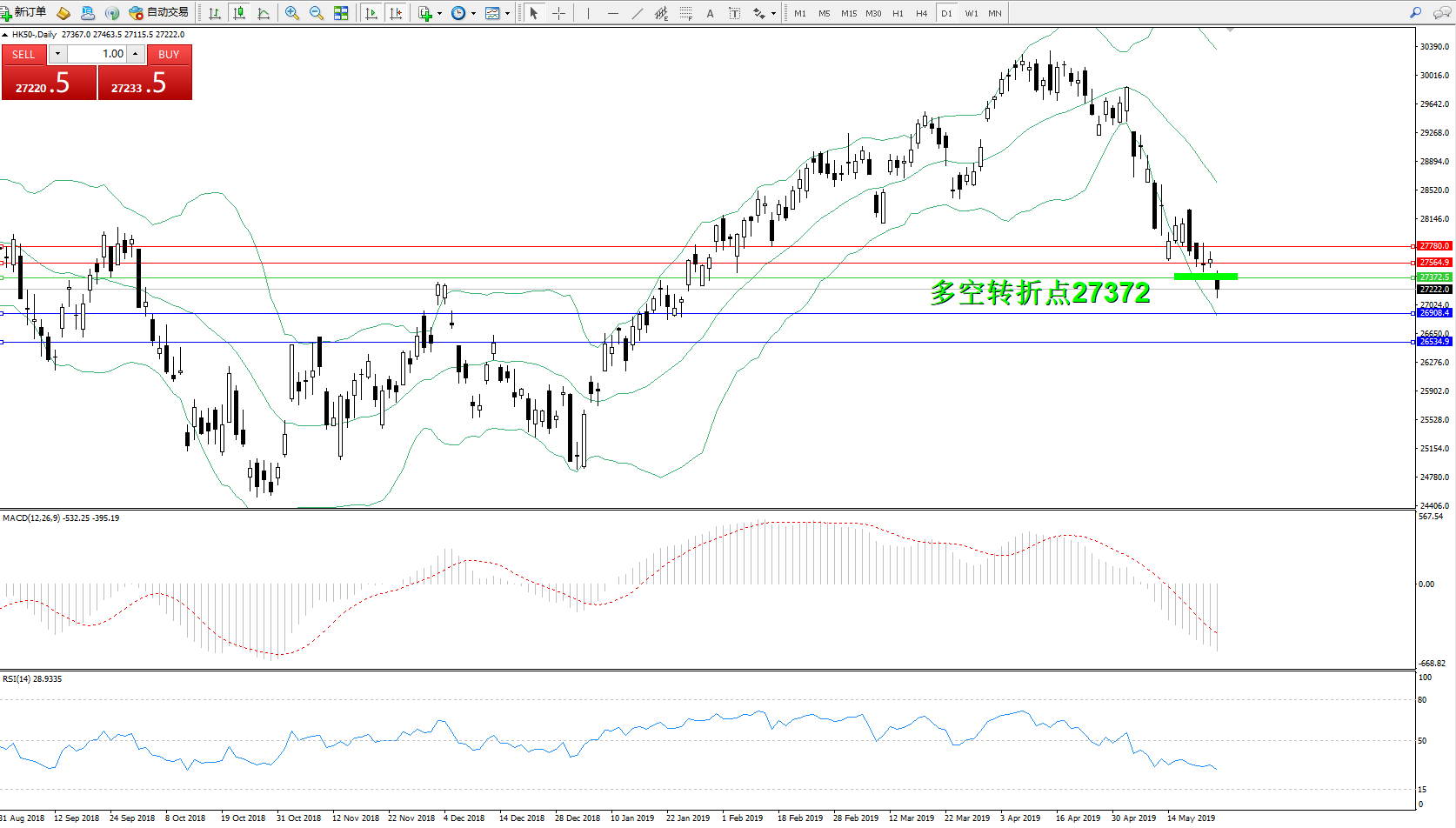 恒指HK50 ——日K线图显示: