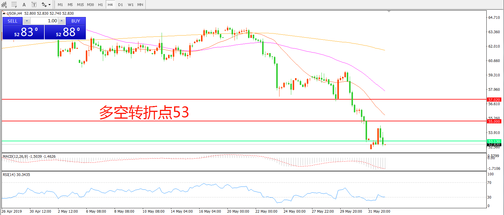 交易策略:在53.00之下看跌,目标50.00 46.00