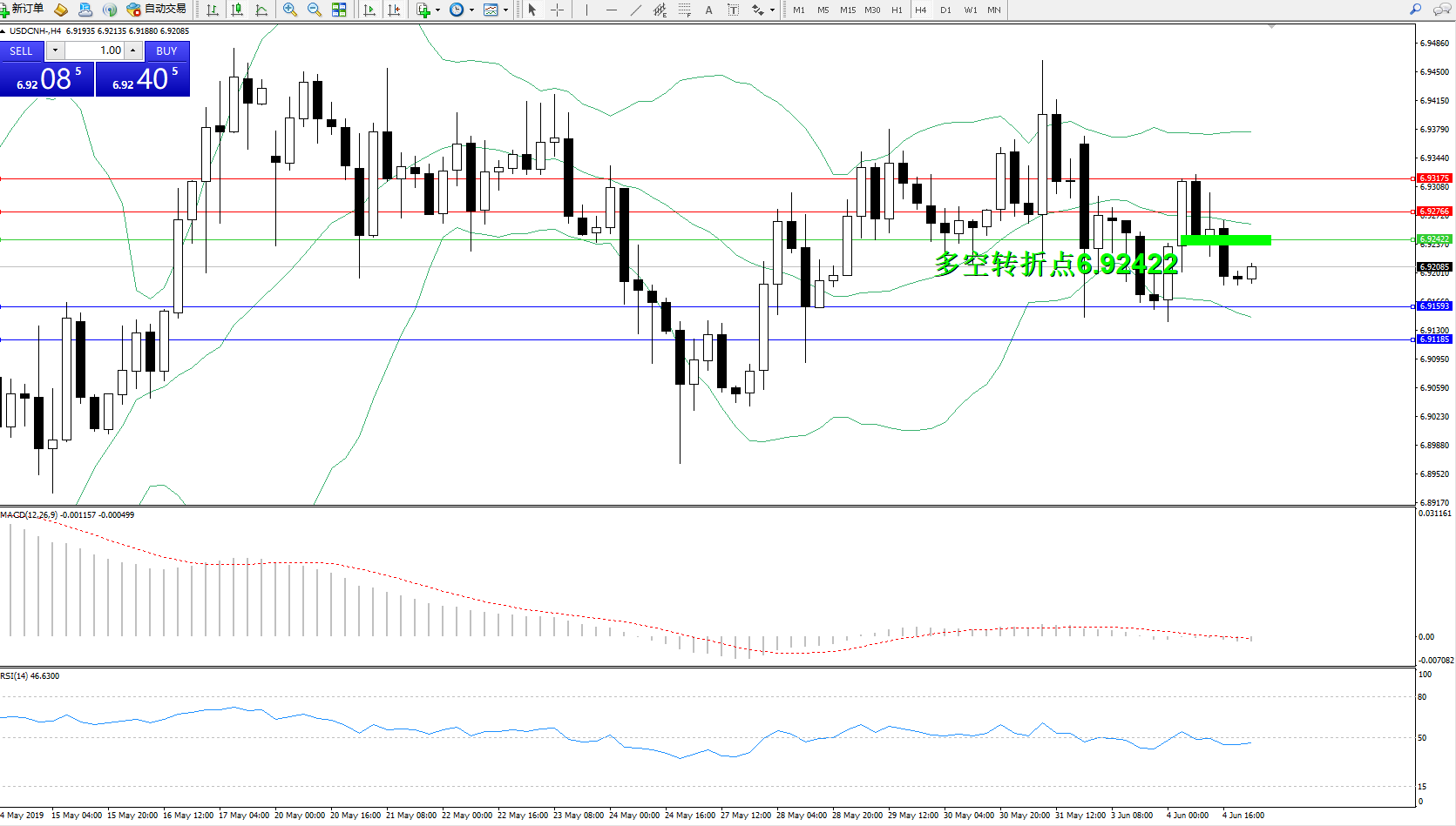 交易策略:6.92422下方看跌,目标6.915936.91185