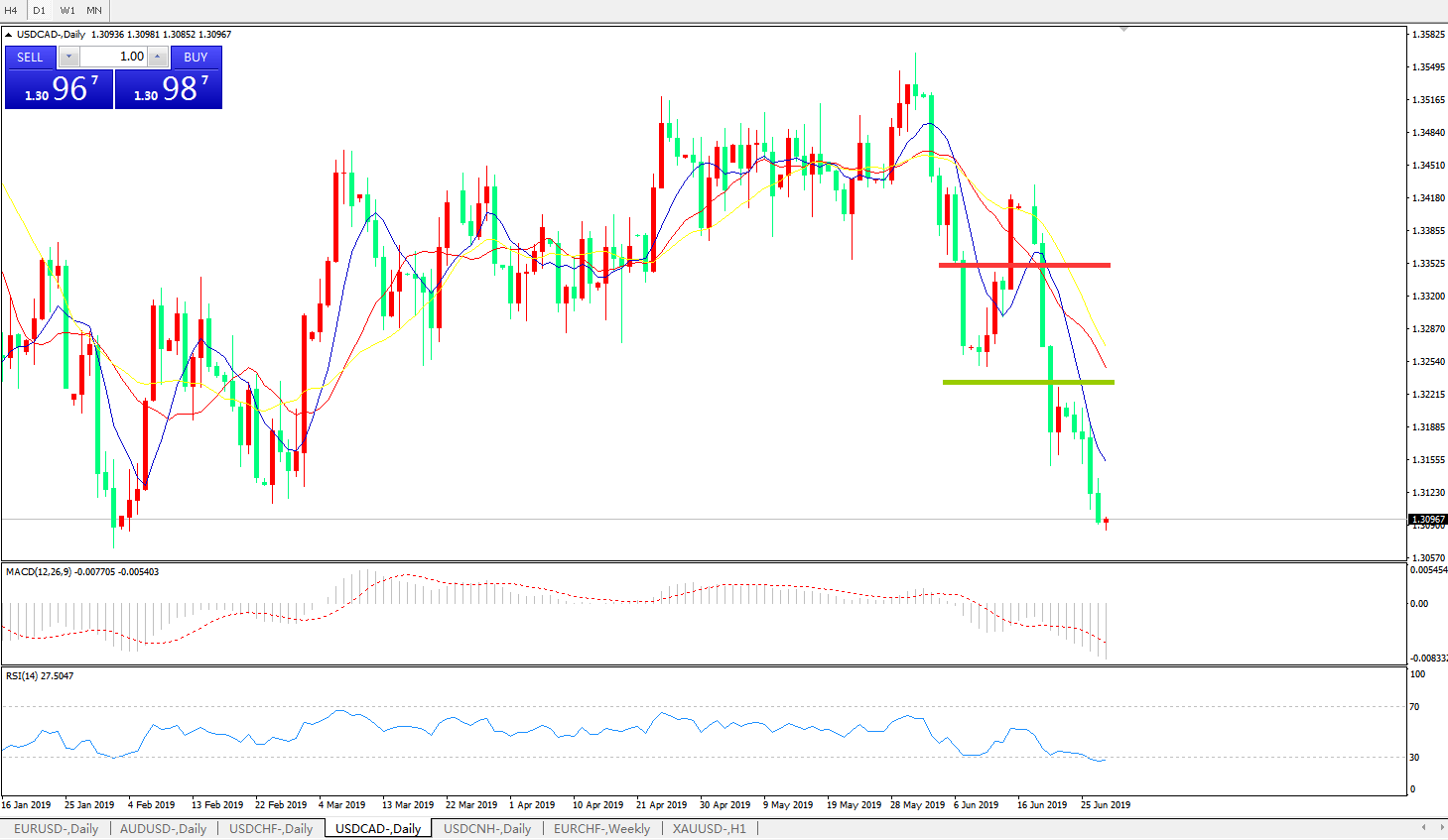 美元兑加元USDCAD    日线