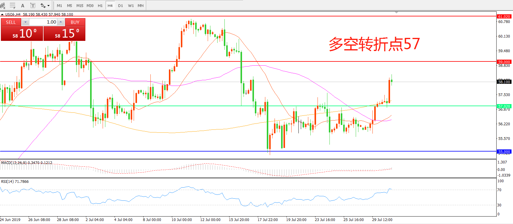 交易策略:在57.00之上看涨,目标59.00 61.00