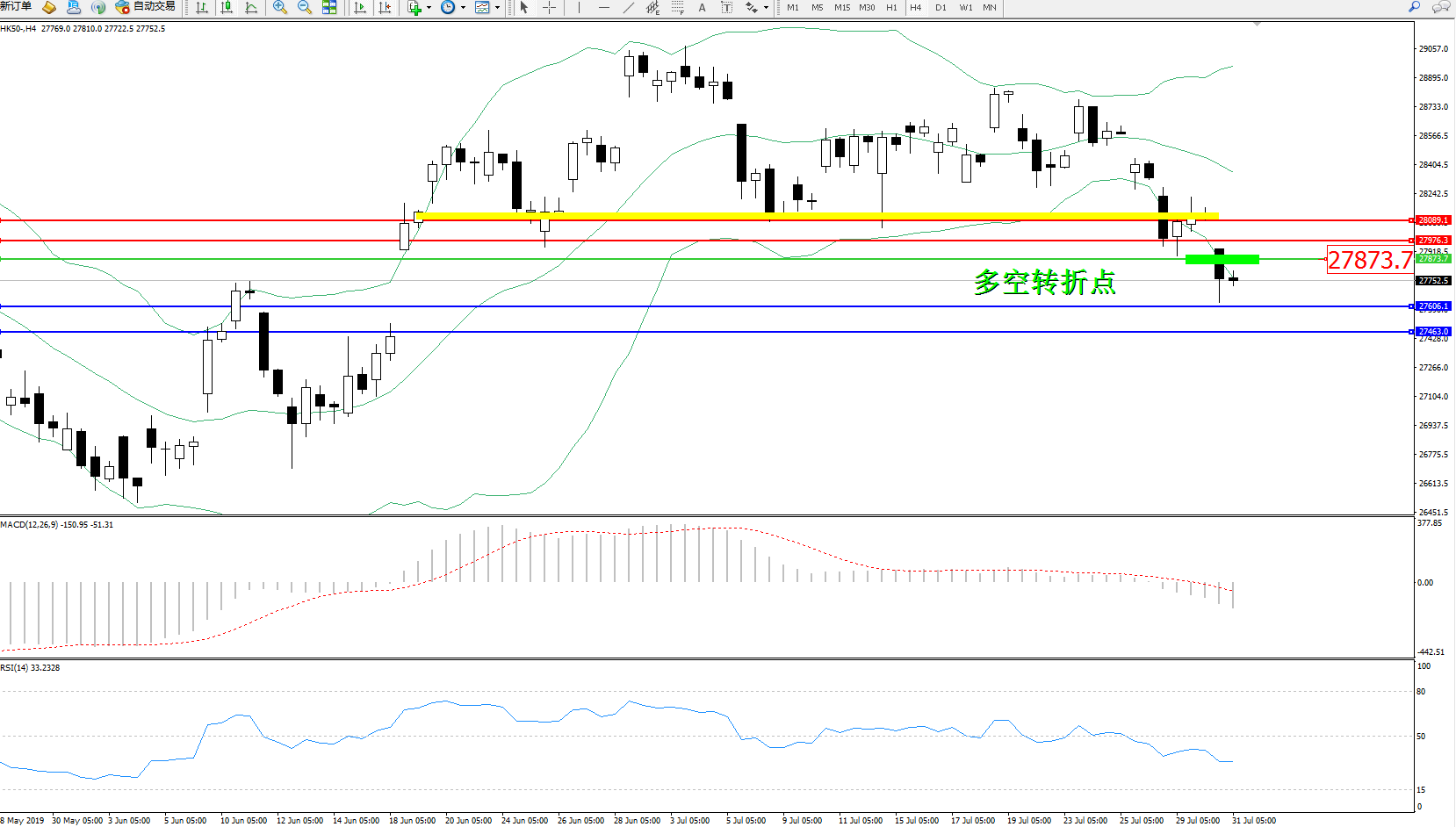 恒指HK50 ——4小时K线图显示: