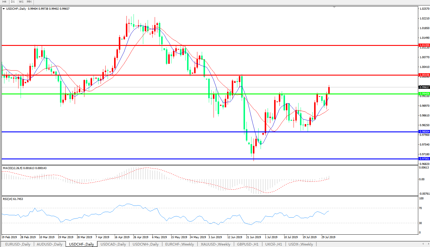 美元兑瑞郎USDCHF 日线图: