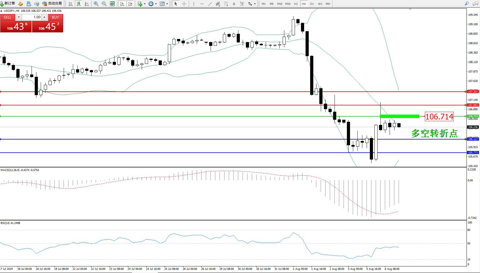 交易策略:106.714下方看跌,目标106.122105.773