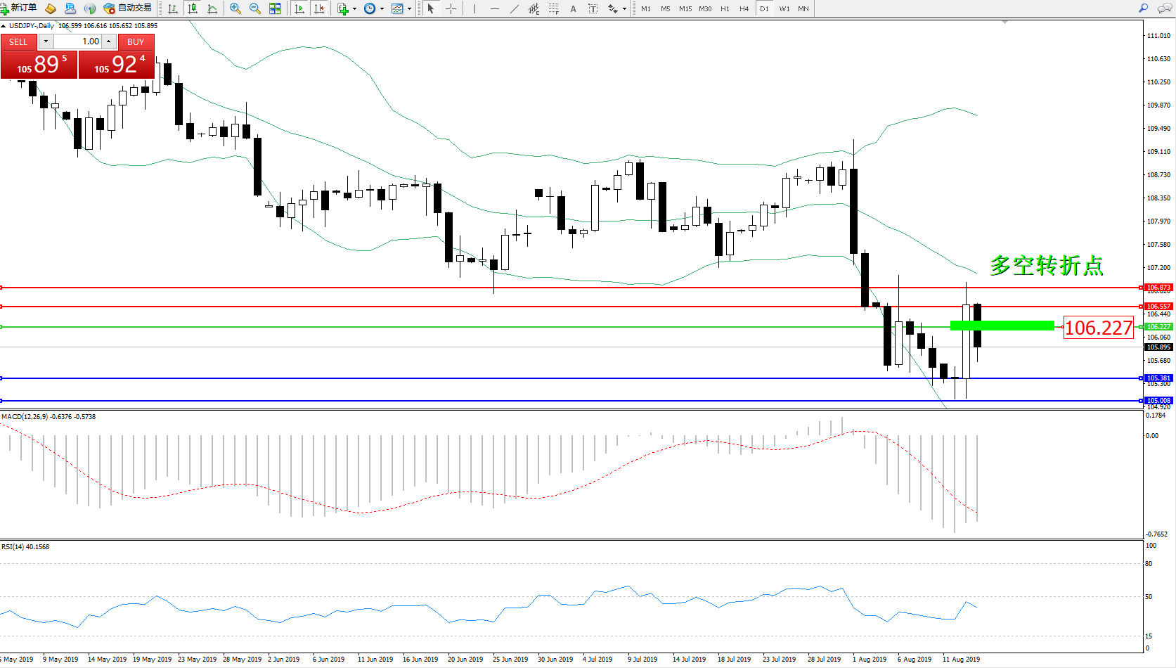 美元兑日元大跌0.75%105.9附近,日内全球各国经济数据再度低迷,中国7月系列数据系数逊色,同时德国GDP环比录得衰退,这都令投资者对未来全球经济增长前景继续看衰。在此状况下,避险日元对投资者的吸引力巨大。并且日内美国2年期与10年期国债收益率自2007年以来首度出现倒挂,这通常被释读为经济衰退在即的信号,因此美股在盘前即大幅跳跌,这更促进了避险情绪的升温。