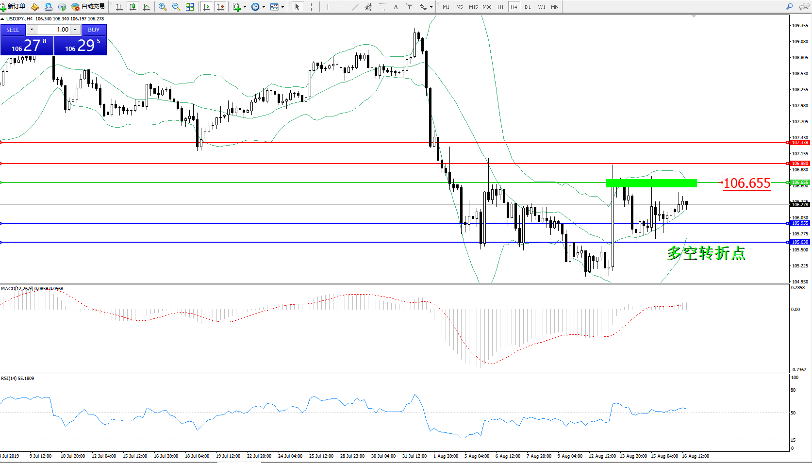 交易策略:106.655下方看跌,目标105.955105.630