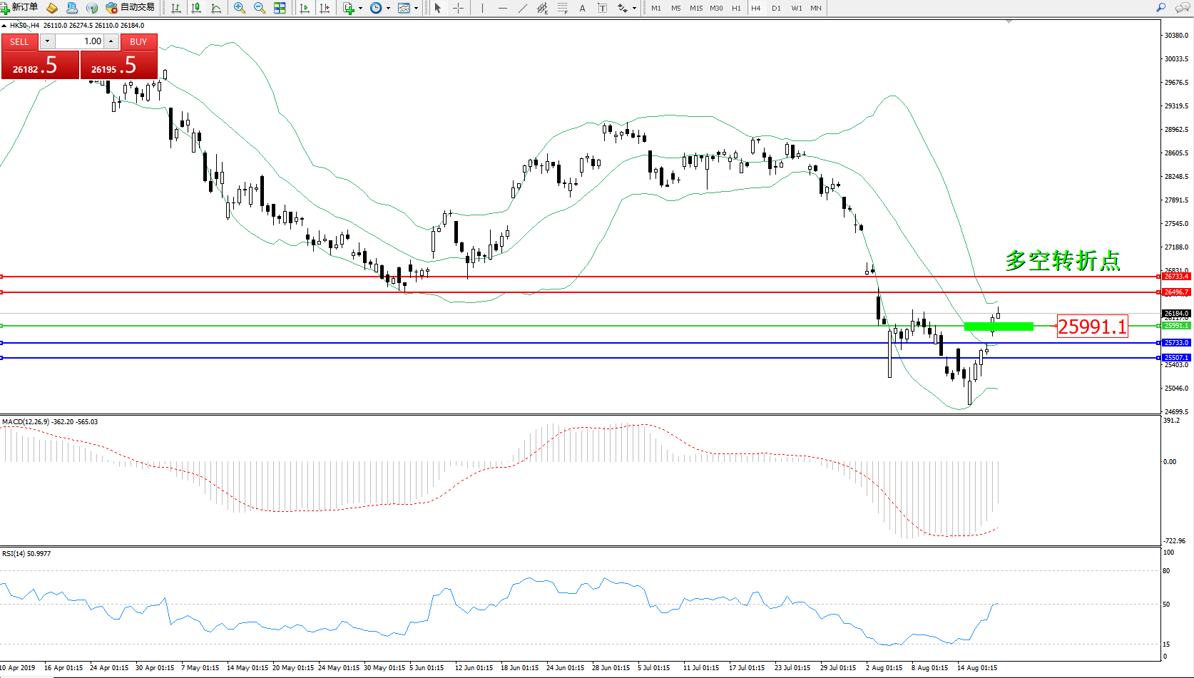恒指HK50 ——4小时K线图显示:
