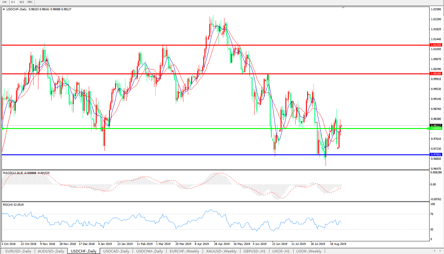 备选策略:0.9800下方看跌,目标0.9700、0.9542