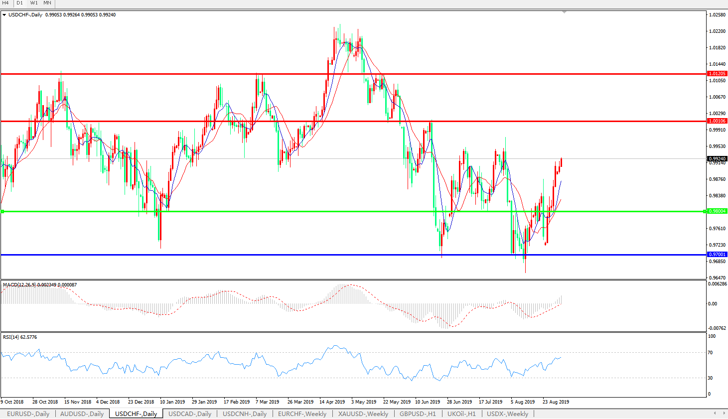 美元兑瑞郎USDCHF 日线图: