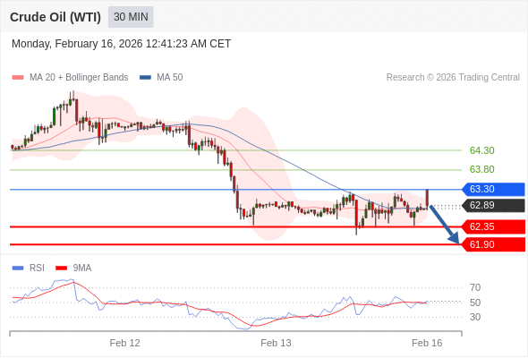 在 63.30 之下,看跌,目标价位为 62.35 ,然后为 61.90 。