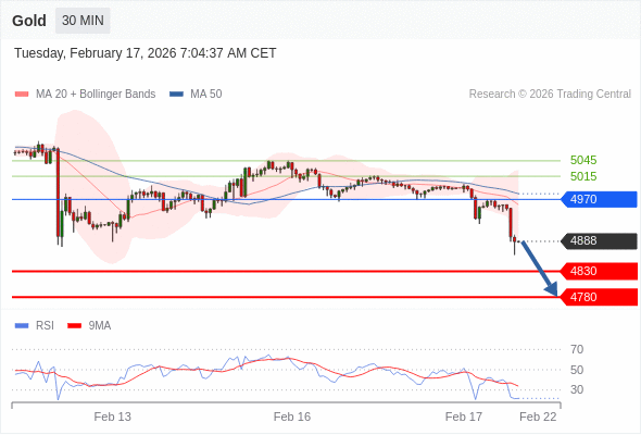 在 4970 之下,看跌,目标价位为 4830 ,然后为 4780 。