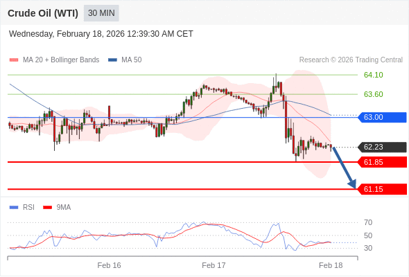 在 63.00 之下,看跌,目标价位为 61.85 ,然后为 61.15 。