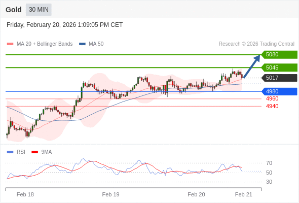 在 4980 之上,看涨,目标价位为 5045 ,然后为 5080 。