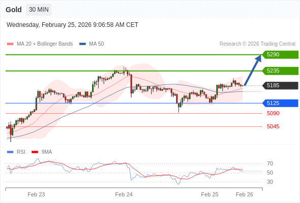 在 5125 之上,看涨,目标价位为 5235 ,然后为 5290 。