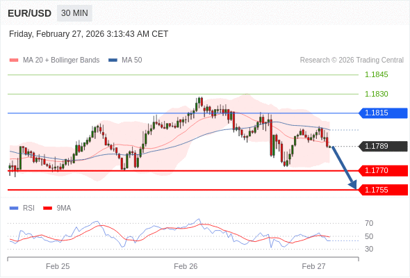 在 1.1815 之下,看跌,目标价位为 1.1770 ,然后为 1.1755 。