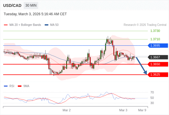 交易策略: 在 1.3695 之下,看跌,目标价位为 1.3650 ,然后为 1.3625 。