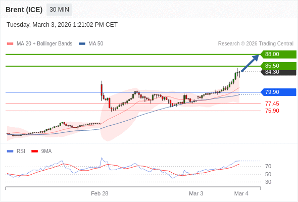 在 79.10 之上,看涨,目标价位为 85.50 ,然后为 88.00 。