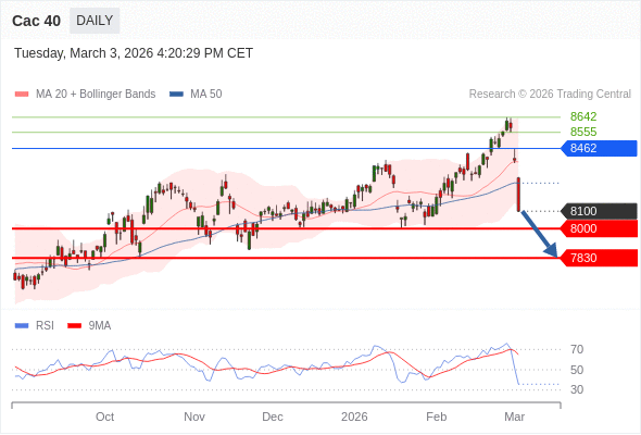 Cac 40 短线: 存在压力。