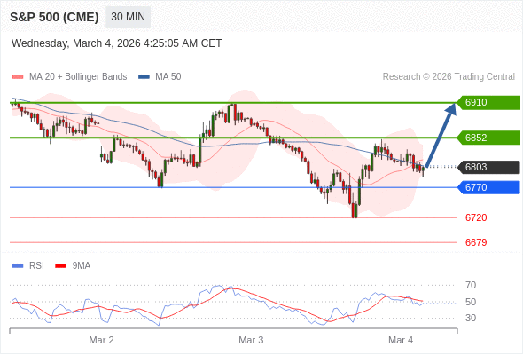 在 6770 之上,看涨,目标价位为 6852 ,然后为 6910 。