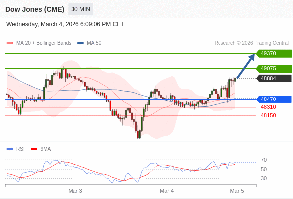 在 48470 之上,看涨,目标价位为 49075 ,然后为 49370 。