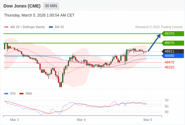 在 48680 之上,看涨,目标价位为 49075 ,然后为 49370 。