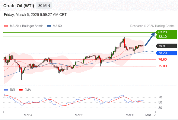 在 78.20 之上,看涨,目标价位为 82.10 ,然后为 83.20 。
