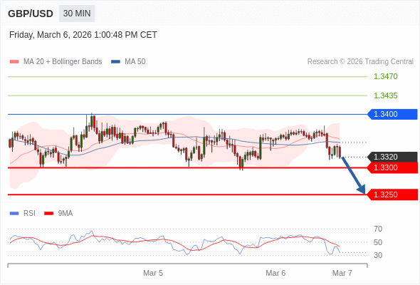 在 1.3400 之下,看跌,目标价位为 1.3300 ,然后为 1.3250 。