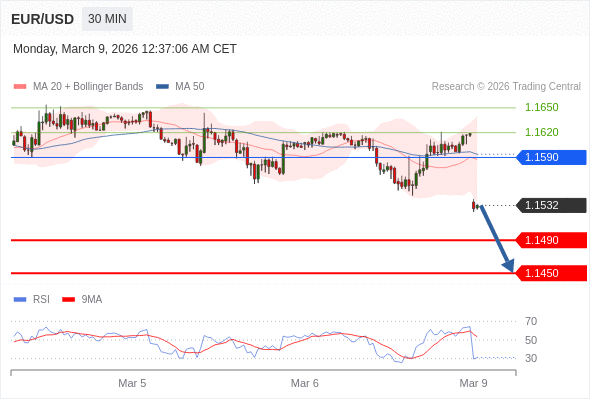 在 1.1590 之下,看跌,目标价位为 1.1490 ,然后为 1.1450 。