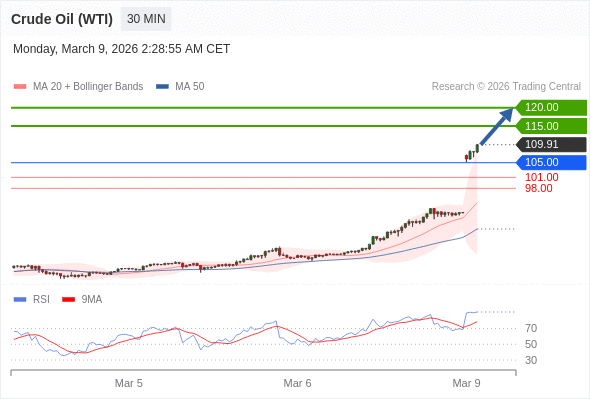 在 105.00 之上,看涨,目标价位为 115.00 ,然后为 120.00 。
