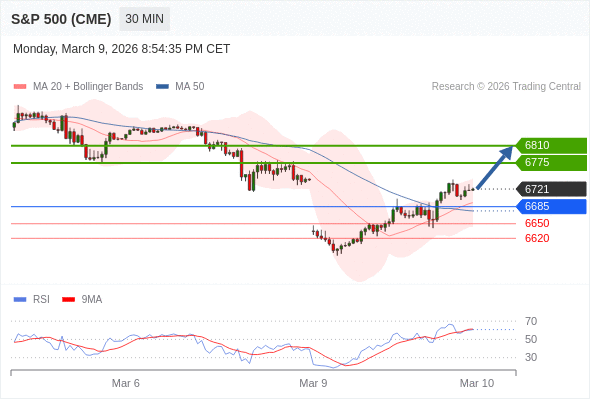 在 6685 之上,看涨,目标价位为 6775 ,然后为 6810 。