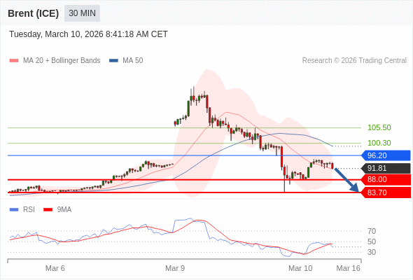 交易策略: 在 96.20 之下,看跌,目标价位为 88.00 ,然后为 83.70 。