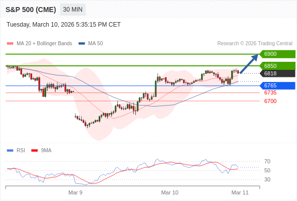 在 6765 之上,看涨,目标价位为 6850 ,然后为 6900 。