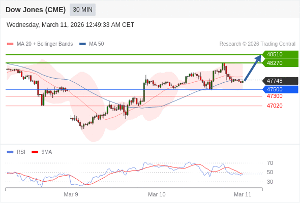 在 47500 之上,看涨,目标价位为 48270 ,然后为 48510 。