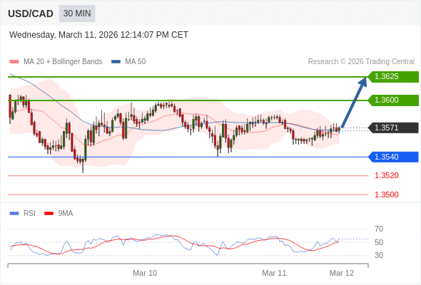 在 1.3540 之上,看涨,目标价位为 1.3600 ,然后为 1.3625 。