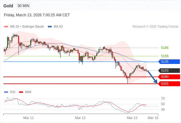 在 5135 之下,看跌,目标价位为 5080 ,然后为 5055 。