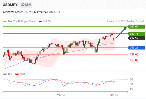 在 159.25 之上,看涨,目标价位为 159.75 ,然后为 160.00 。