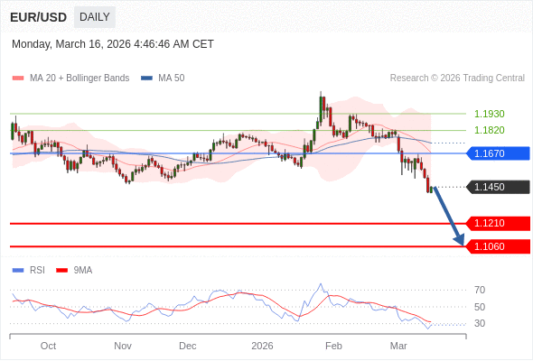 交易策略: 在 1.1670 之下,看跌,目标价位为 1.1210 ,然后为 1.1060 。