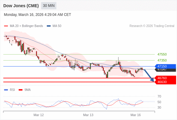 在 47150 之下,看跌,目标价位为 46760 ,然后为 46630 。