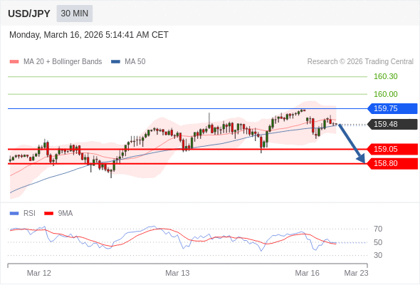 美元/日元 当日内: 短期关键阻力位在159.75。