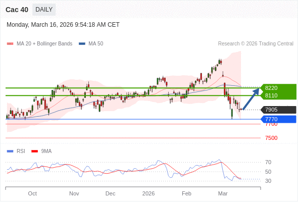 在 7770 之上,看涨,目标价位为 8110 ,然后为 8220 。