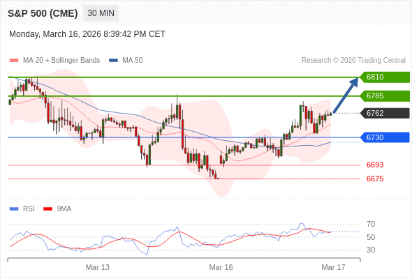 在 6730 之上,看涨,目标价位为 6785 ,然后为 6810 。