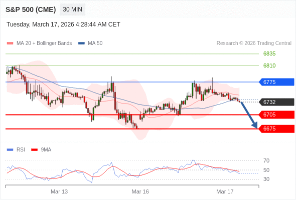 在 6775 之下,看跌,目标价位为 6705 ,然后为 6675 。