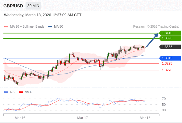 在 1.3315 之上,看涨,目标价位为 1.3390 ,然后为 1.3410 。