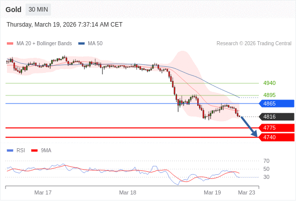 在 4865 之下,看跌,目标价位为 4775 ,然后为 4740 。