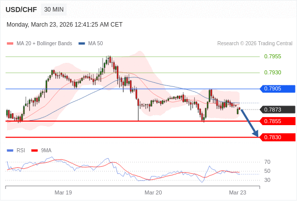 交易策略: 在 0.7905 之下,看跌,目标价位为 0.7855 ,然后为 0.7830 。